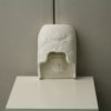 Wandleuchte mit Beleuchtung auf Buddhakopf, weiß